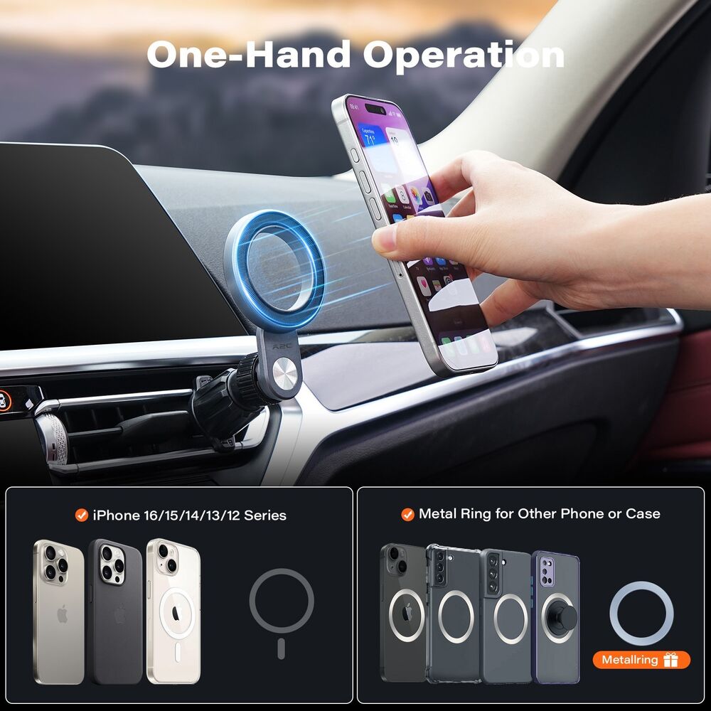 * Compatible with the iPhone MagSafe series / Other Devices with MagSafe Case / Other Devices with the included ring plate and stick it to the back of the phone case (Case is not included).