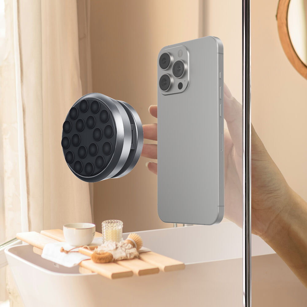 A2C Universal Silicone Suction (Metal Ring included) Magnetic MagSafe Compatible/ Pixelsnap Phone Mount Holder [Colour:Black]