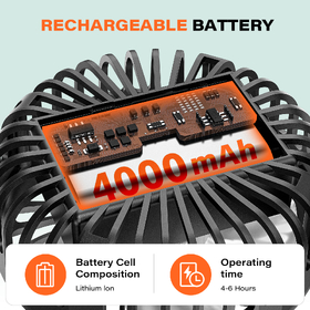 - Up to 6 hours of cooling with a rechargeable, long-lasting battery.