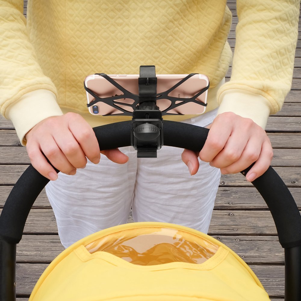 - Multifunctional smartphone mount can be mounted on a variety of locations such as bike / moto bike handle bars, shopping cart, baby carriage/stroller, treadmill and so on.
