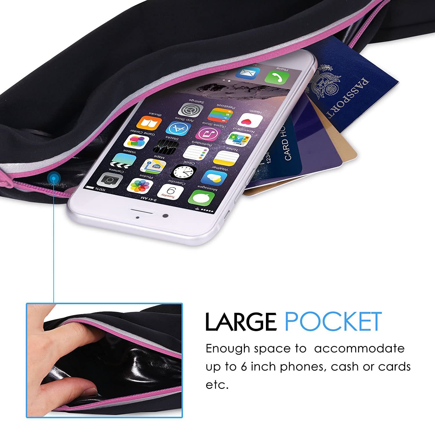 - Running phone holder for phone size up to 6.5 inch.