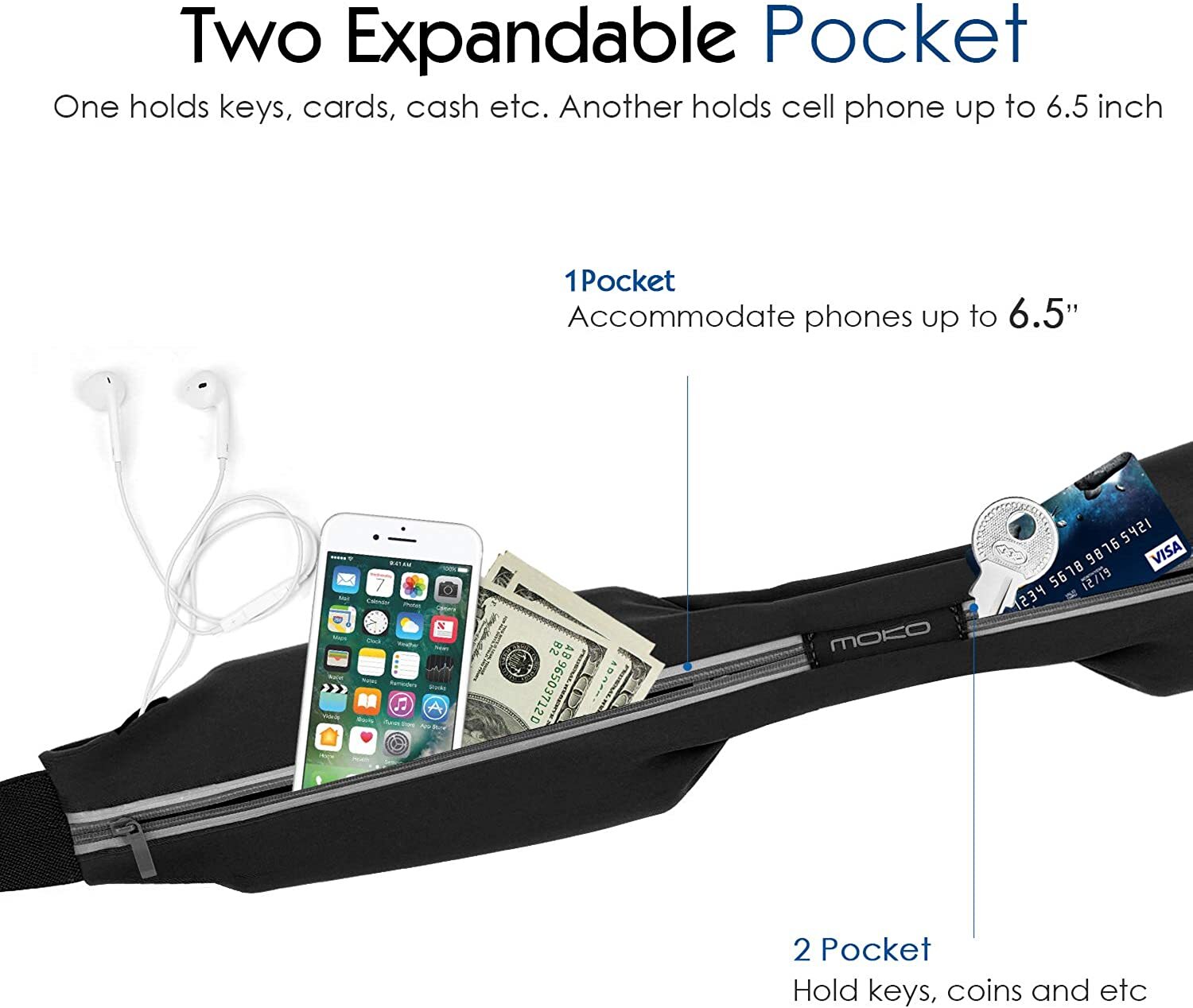- Two pockets design, ultra lightweight with extra storage grid separate your phone and earphones, wallet, cash, coin, keys or any other sharp things keeps your goods secure and protected.