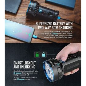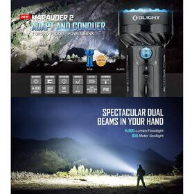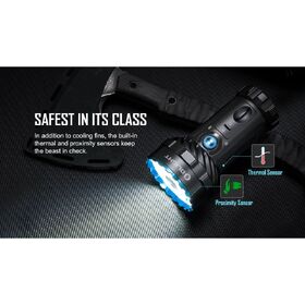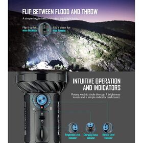 - Extremely Powerful and Flexible - Featuring an 800-metre spotlight beam from the central LED, and a 14000-lumen floodlight beam from 12 surrounding LEDs.