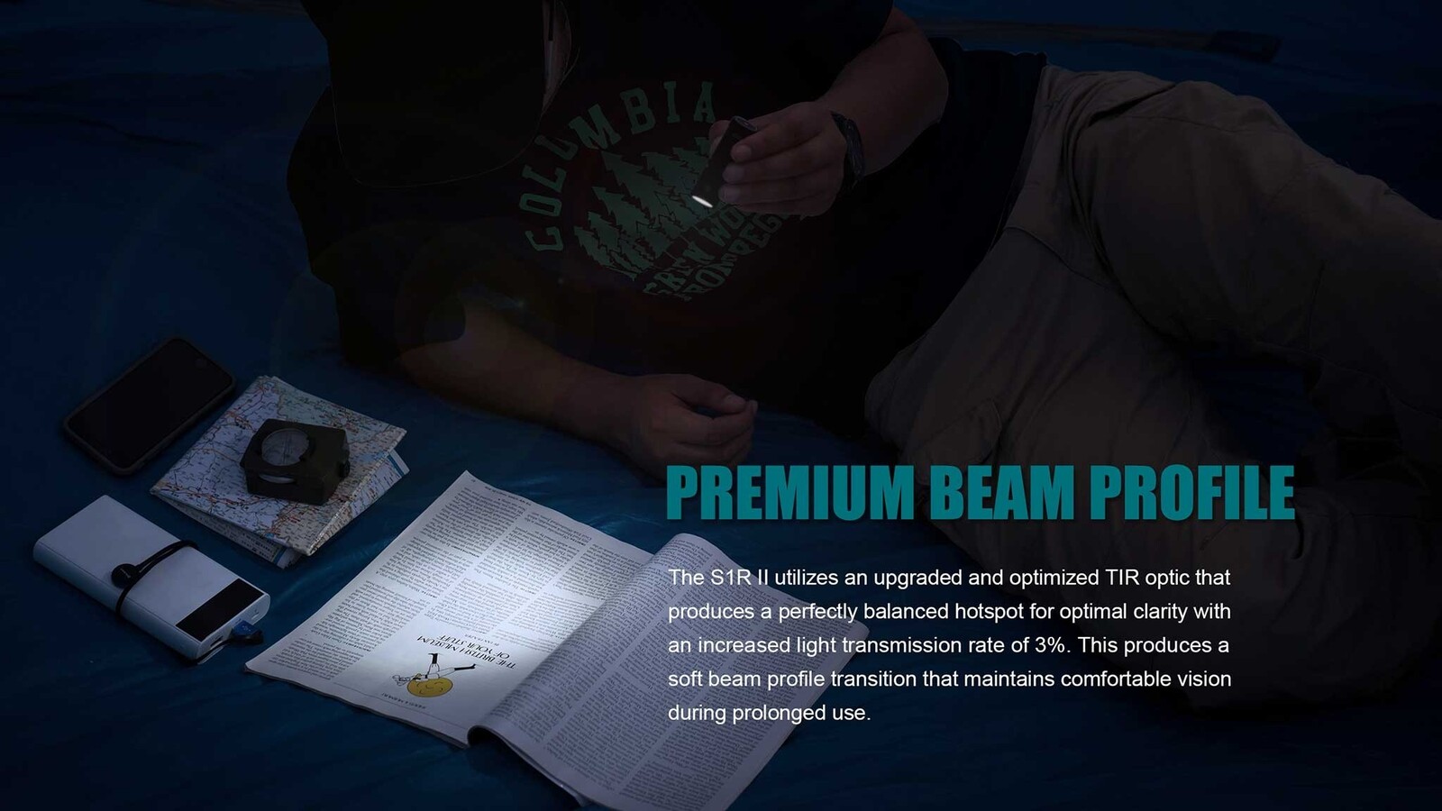 - TIR (Total Internal Refraction) lens provides far-reaching, evenly-dispersed beam