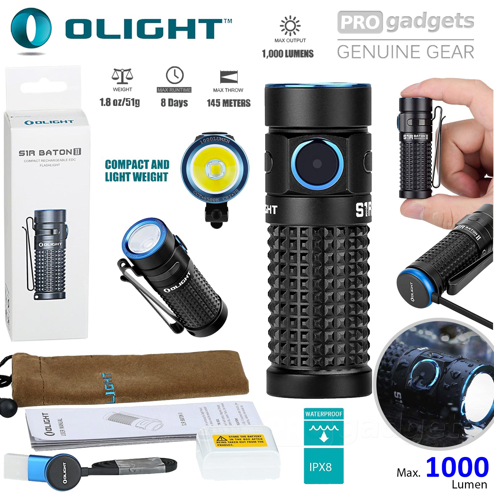 | Olight S1R Baton II Compact Rechargeable EDC Flashlight Torch | 1PC |