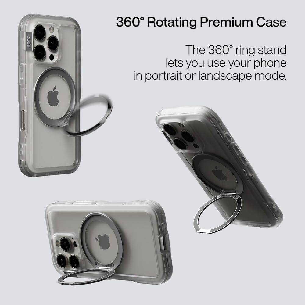 - Adjustable Ring + Stand Function — 360° rotating ring enables effortless angle tuning for streaming, video calls, reading, or selfies. Doubles as a stable stand and a confident finger grip for easier one-hand handling on the go.