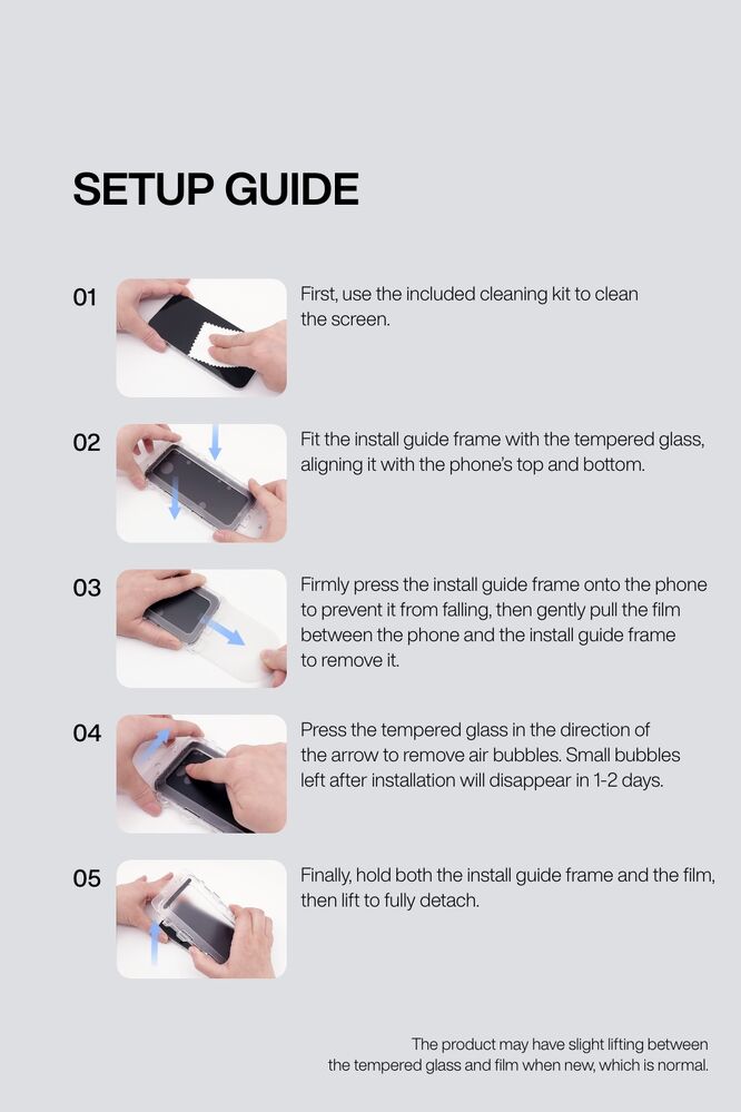 - Dust Free - Quick automatic air release, bubble-free, dust-free and no trapped air.