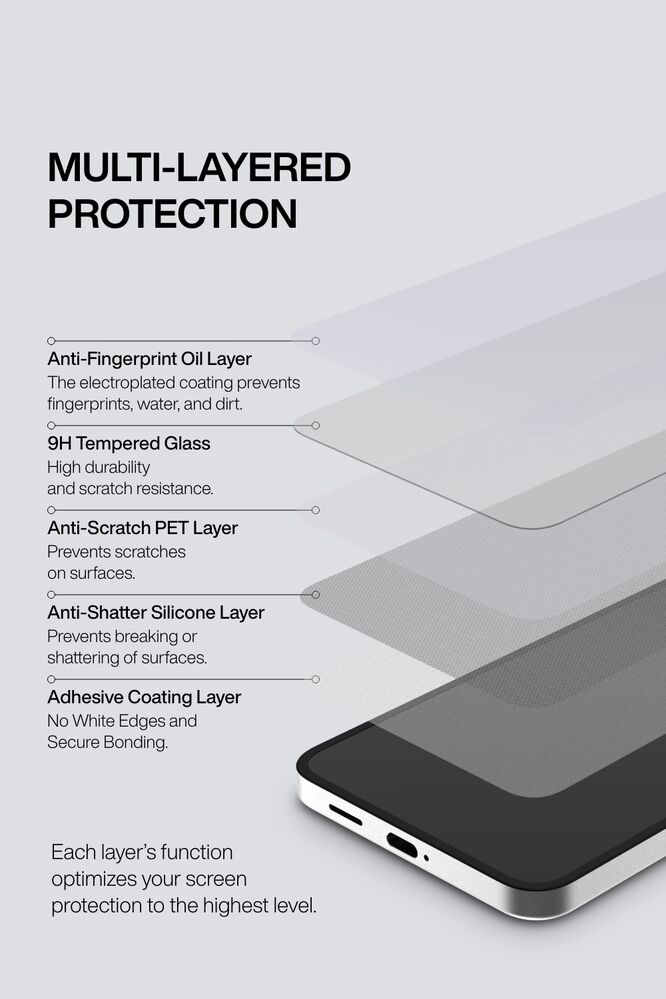 - 9H Tempered Glass Protector - 9H hardness tempered glass protects your device from impacts and scratches.