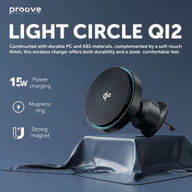 Proove Light Circle is a car charger with a wireless charging function. High power ensures fast charging of the device.