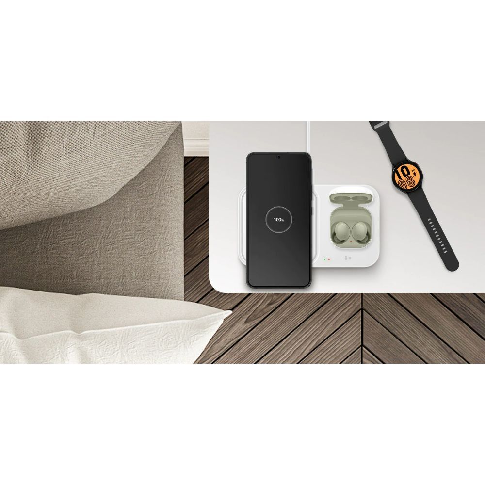 - One charger, two devices - Simultaneously power up your favorite pair of devices to enjoy together — whether that's your phone and Galaxy Watch or your Galaxy Watch and earbuds.