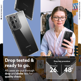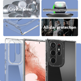 - Clear case with closely contoured edges to show off the design of your Galaxy S22 Ultra.