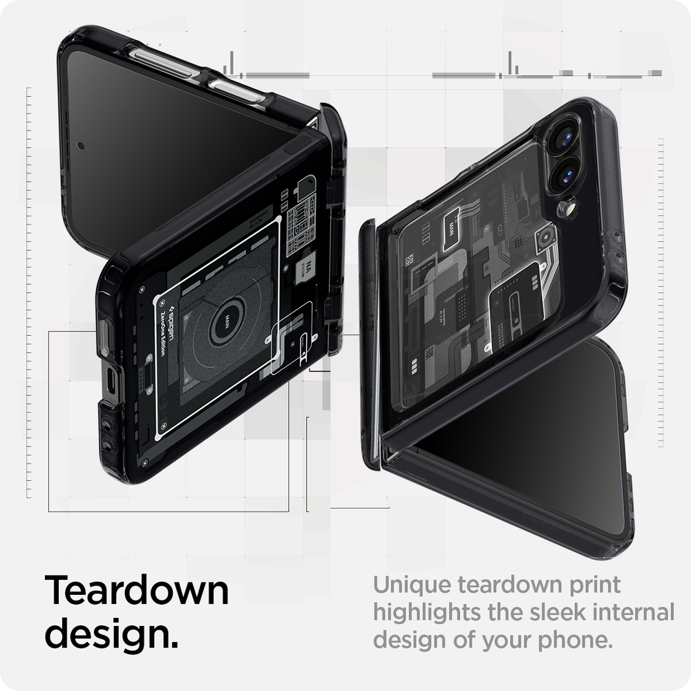 - Teardown Design - Unique teardown print highlights the sleek internal design of your phone.