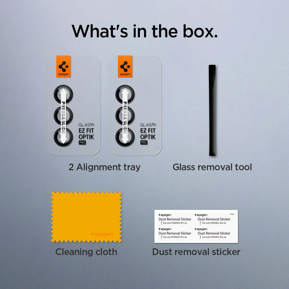 - Includes two lens protectors and a cleaning set.