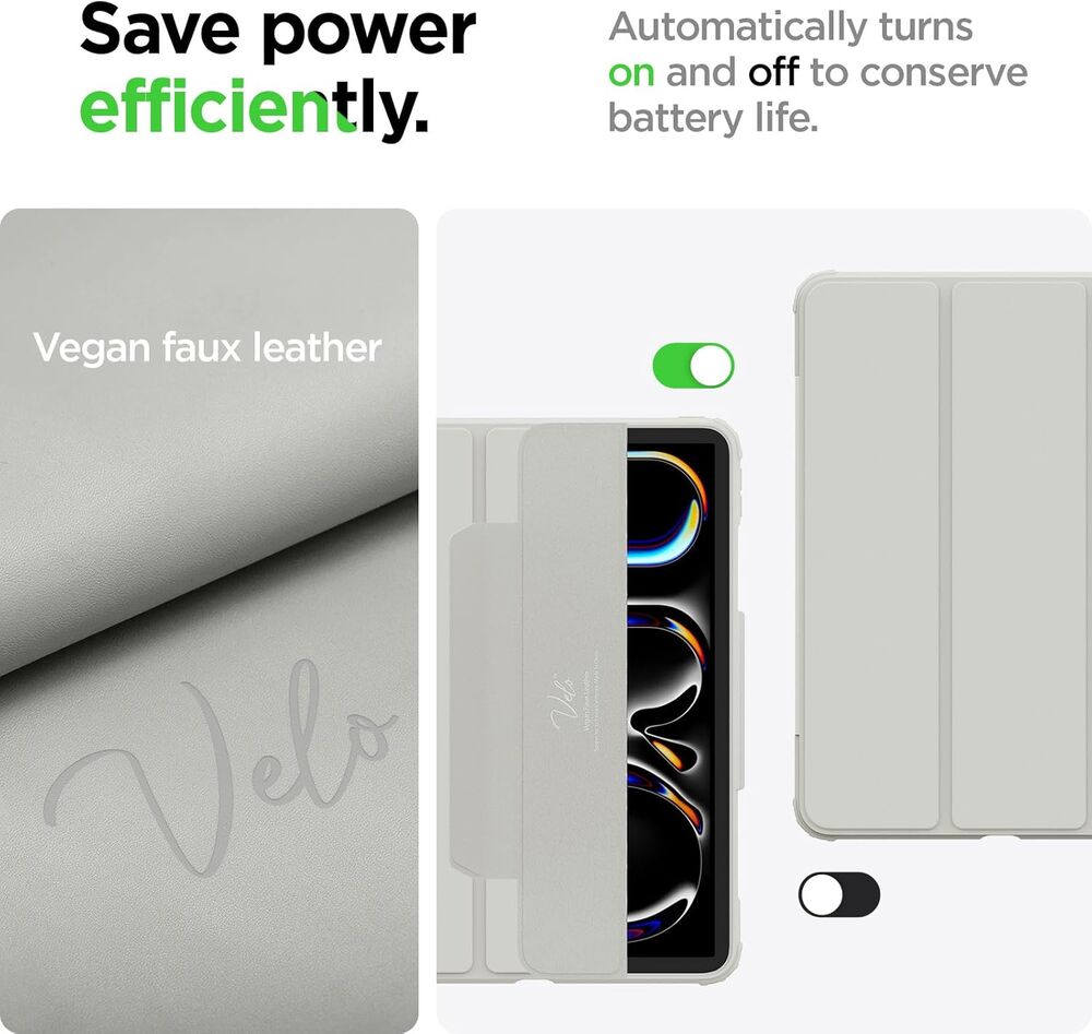 - Automatically wakes up your iPad when opened and puts it in sleep mode when closed.