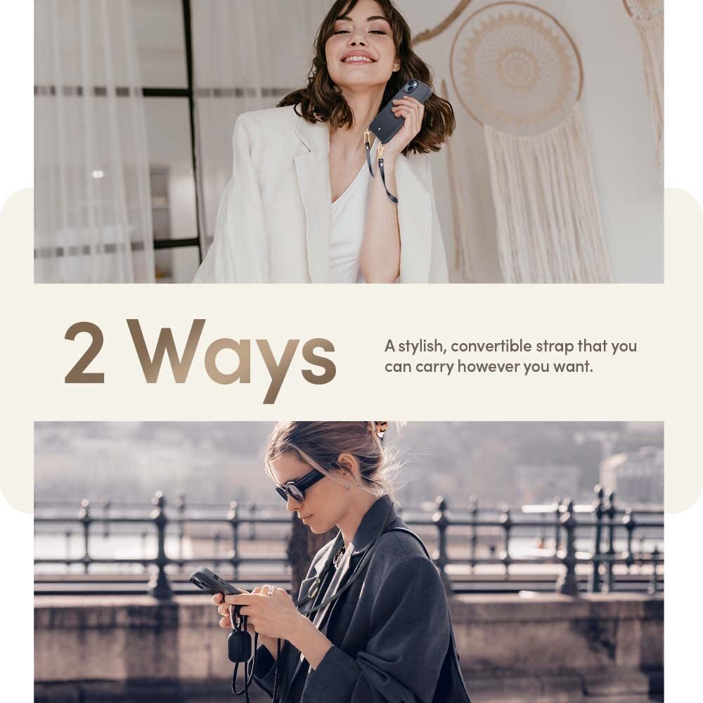 - Stress less about dropping your phone with Classic Charm’s synthetic leather strap that is sturdy, adjustable, and detachable. Two ways to wear: as a crossbody or as a wrist strap.