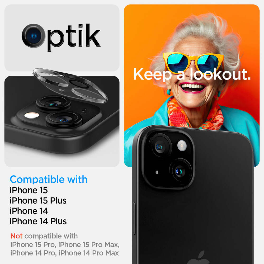 ** Not compatbile with Spigen Optik Armor (MagFit) case for iPhone 15 / 14 series.