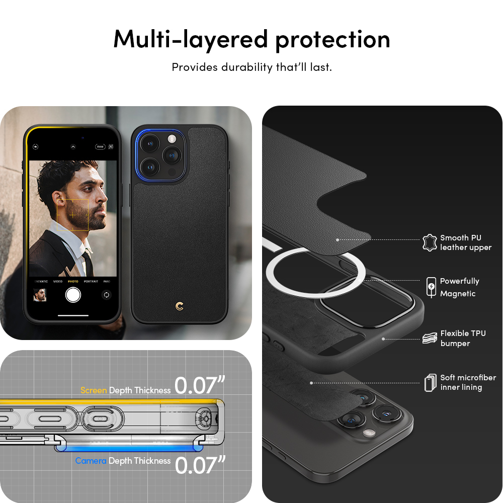 - 4-layer protection provides maximized protection and consists of a soft microfiber inner lining, sturdy PC back, TPU bumpers, and synthetic leather.