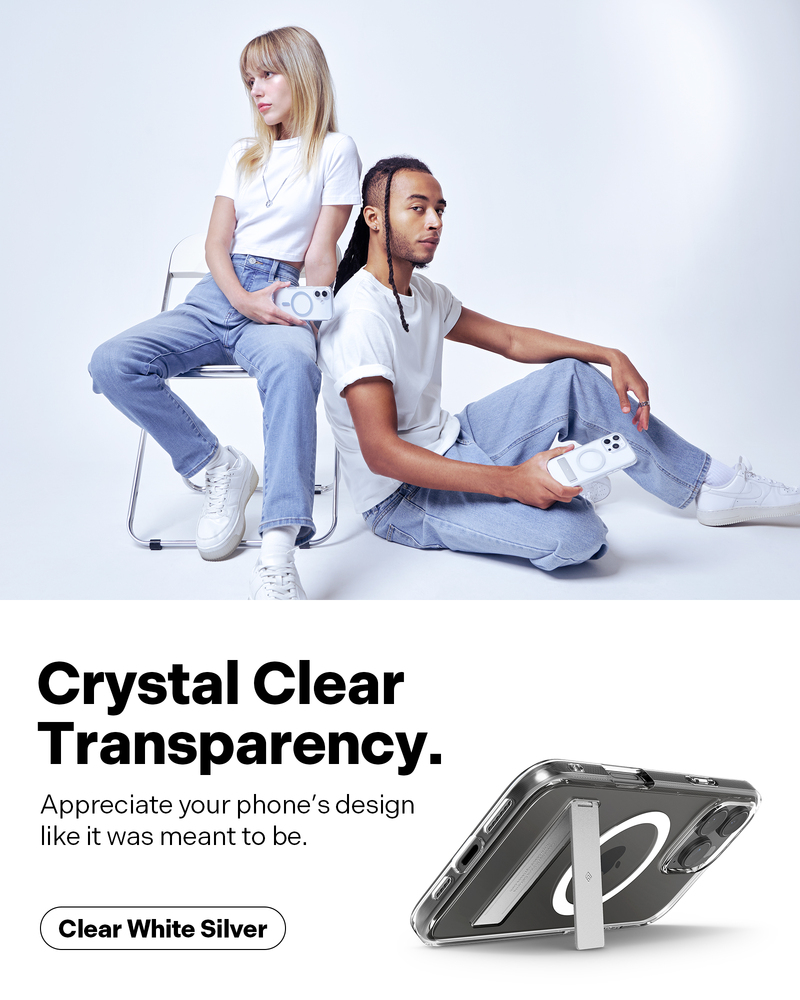 Caseology by SPIGEN Capella Mag Kickstand MagSafe Compatible for iPhone 16 Pro Case [Colour:Clear Case / White Ring]