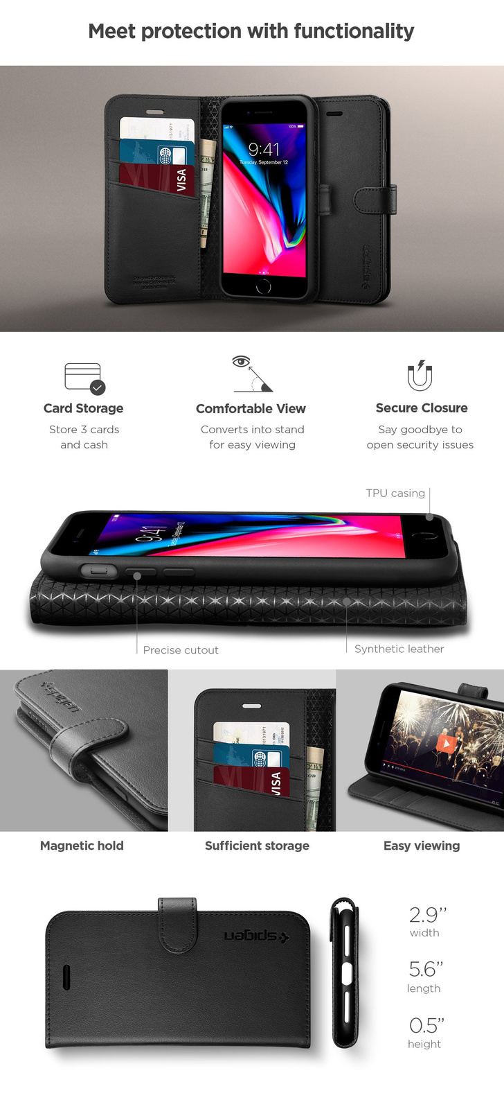 - Made of synthetic leather and a TPU shell to encase the device