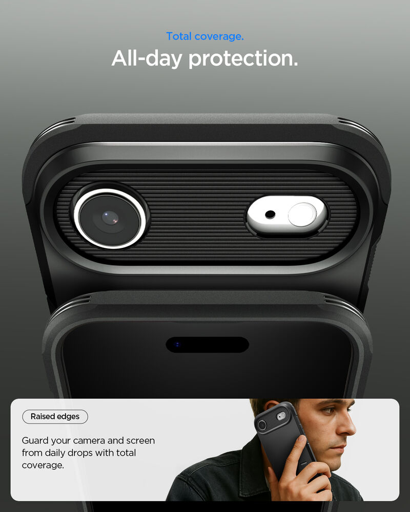 - Raised edges for screen and camera protection via Extreme Protection Tech.
