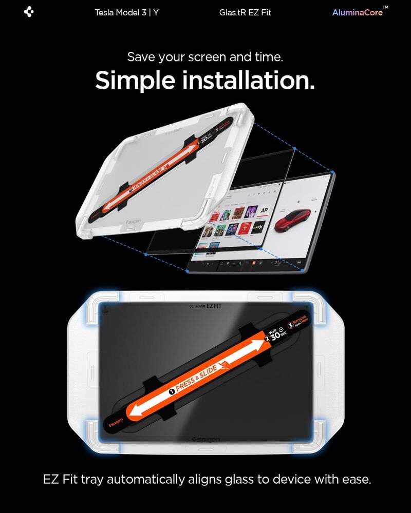 | SPIGEN GLAS.tR EZ Fit Glass Screen Protector for Tesla Model 3 Highland (2024 - 2026) / Model Y Juniper 2025 15.4" | 1PC |