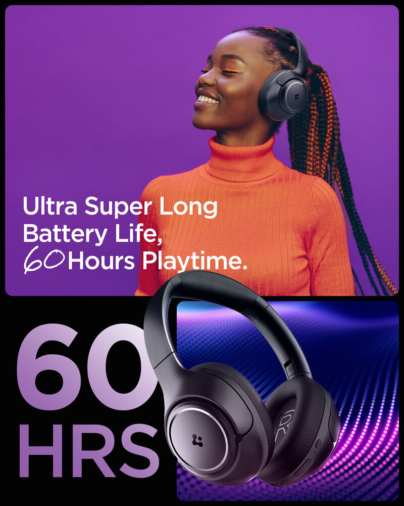 SPIGEN AUDIO Advanced Noise Cancellation Pro Over-Ear Headphones SA2403 [Colour:Black]