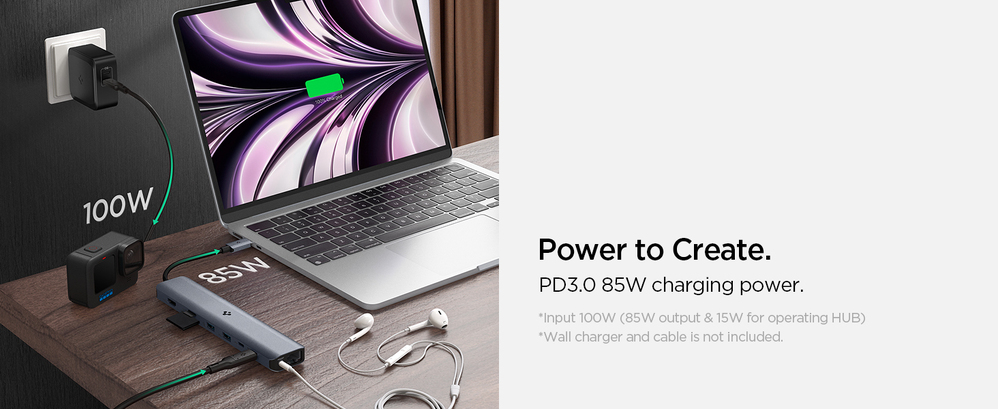 - Stay Connected and Charged: Equipped with a USB-C Power Delivery input port, you can power up your devices (Max 85W) while enjoying the convenience of multiple data ports.