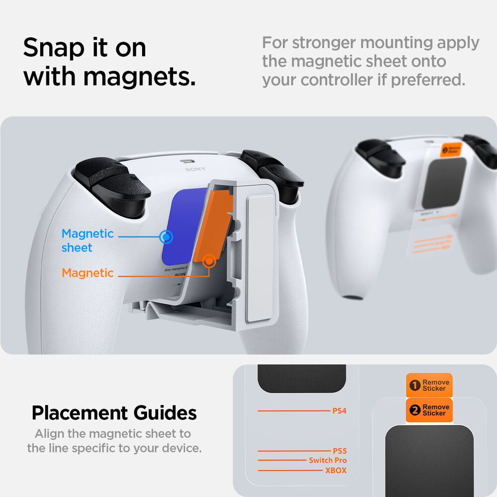 - Extra mounting strength with magnetic stickers to secure your controllers.
