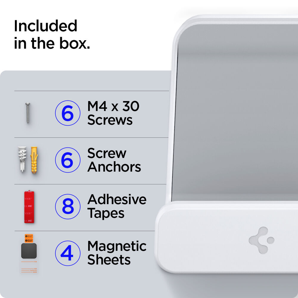 - Secure and drill-free installation, including screws, wall anchors, and double-sided tape.